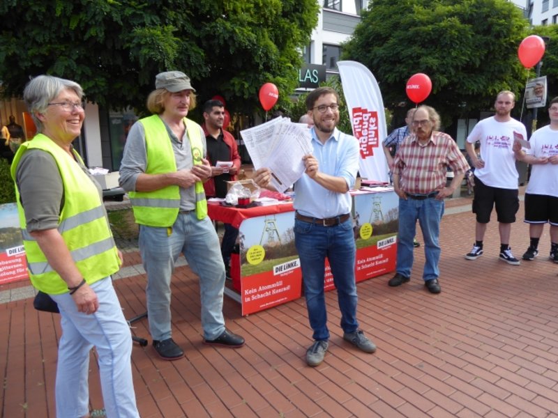 (Di., 24.08.21/SW) Als Abgeordneter aus dem Wahlkreis Salzgitter-Wolfenbüttel begleitet Victor Perli die Auseinandersetzung um Schacht KONRAD schon seit vielen Jahren. Die aktuelle Kampagne, die den niedersächsischen Umweltminister Olaf Lies zur Rücknahme der Genehmigung von Schacht KONRAD bewegen soll, hat ihn motiviert, das Thema in seiner Bundestagsfraktion auf den Tisch zu bringen. Ergebnis dieses persönlichen Engagements: 59 Unterschriften der Berliner Abgeordneten! Am Samstag übergab er im Beisein seines Wahlkampfteams diese und noch weitere gesammelte Unterschriften an die AG Schacht KONRAD. "Wir bedanken uns hoch erfreut für das persönliche und politische Engagement und hoffen, dass dieses gute Beispiel auch andere Fraktionen motiviert", sagte Ludwig Wasmus vom Vorstand der AG Schacht KONRAD e.V.