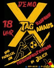 Für den „Tag X“, den Tag, an dem der erste Konvoi startet, sind jeweils um 18 Uhr eine Kundgebung vor dem Forschungszentrum Jülich sowie eine Demo ab Bahnhof Ahaus in die Innenstadt geplant. Ab 20 Uhr ist eine nächtliche Atommüll-Dauermahnwache vor dem Zwischenlager in Ahaus-Ammeln angemeldet. Weitere kurzfristige Proteste entlang der Strecke sind möglich...