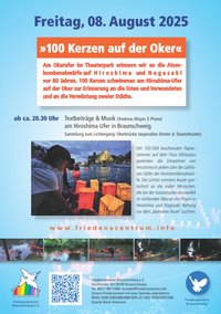 Das Friedenszentrum lädt zum diesjährigen Braunschweiger Gedenken an die Atombombenopfer in Hiroshima und Nagasaki ein.