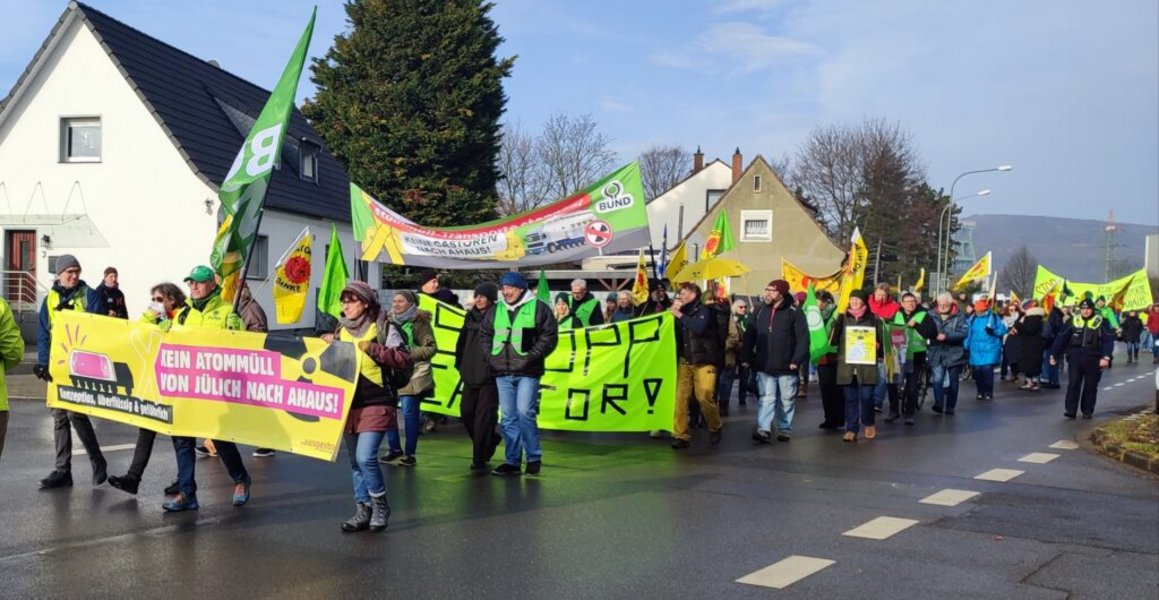 Samstag, 21.2., 14-16 Uhr: Mahnwache Autobahn-Rasthof Ruraue Ost (Südseite A44, bei Jülich), 13.30 Uhr MfG-Treff Walramplatz Jülich